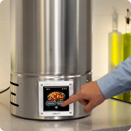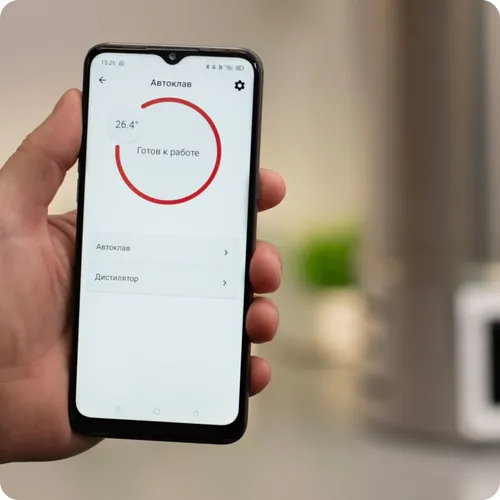 УМНЫЙ КОНТРОЛЬ ПРЯМО С ВАШЕГО ТЕЛЕФОНААвтоклав «Смарт» поддерживает подключение к вашему смартфону через Bluetooth или Wi-Fi. Это даёт вам возможность управлять прибором на расстоянии, следить за процессом и корректировать настройки, даже если вы не находитесь на кухне.
