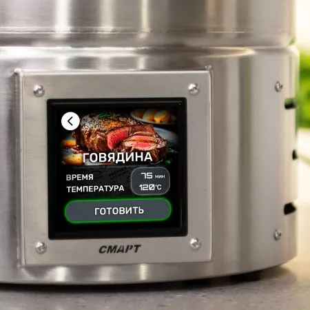 ИНТУИТИВНОЕ УПРАВЛЕНИЕ В ОДНО КАСАНИЕСенсорный дисплей с простым и понятным интерфейсом. Выбирайте один из предустановленных режимов для консервирования мяса, рыбы, овощей или ягод и наслаждайтесь идеальными результатами. Или настройте программу под себя и сохраняйте собственные рецепты.