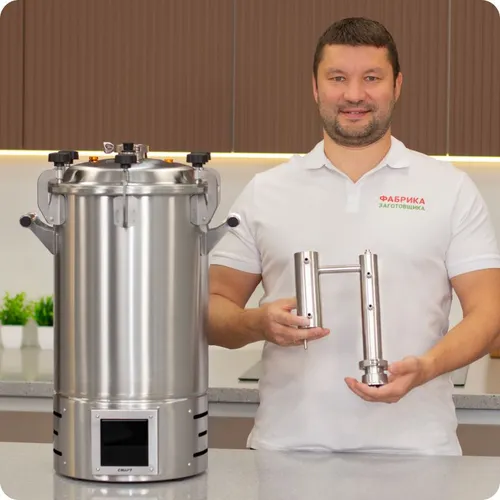 АВТОКЛАВ И ДИСТИЛЛЯТОР В ОДНОМ ФЛАКОНЕ!С автоклавом «Смарт» с дополнительным оборудованием вы получите больше, чем просто устройство для консервирования. Благодаря кламповому соединению и специальным настройкам, он легко превращается в дистиллятор.
